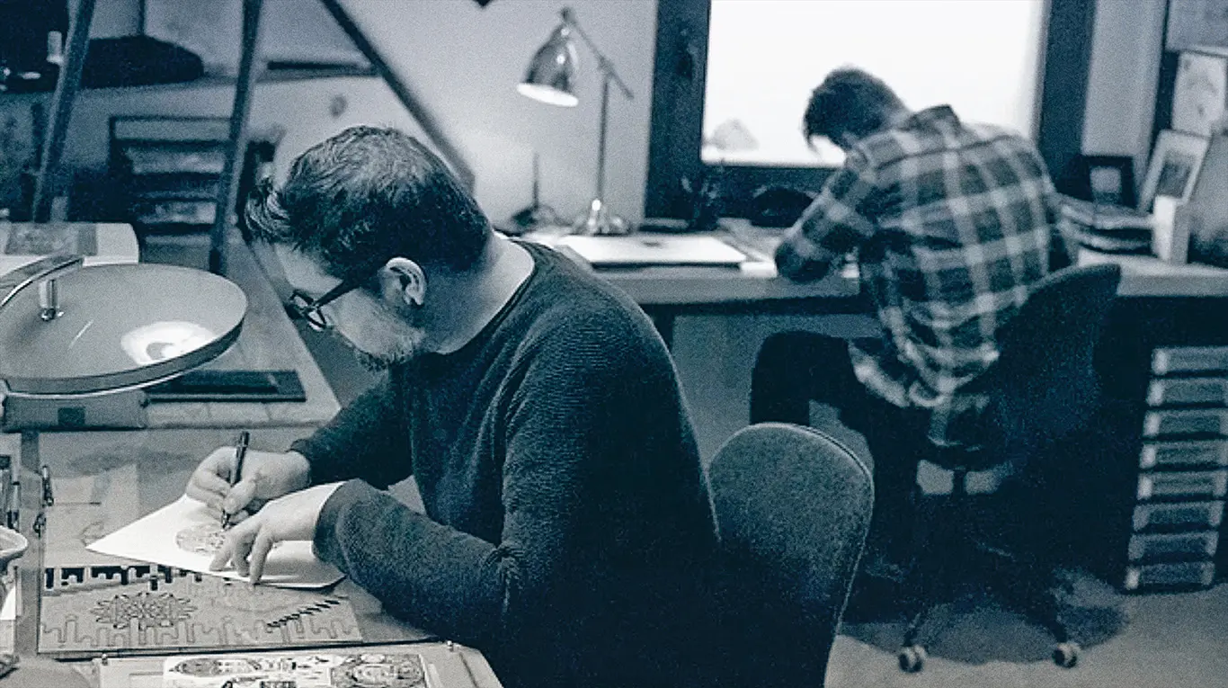 Alex tatoue depuis 25 ans, et Julien Joolz depuis 12 ans. Tous deux ont été formés à l'ancienne, de maître à élève, par des tatoueurs reconnus qui exerçaient eux-mêmes depuis des décennies. C'est une transmission rare aujourd'hui, à une époque où beaucoup se lancent après une formation express ou en autodidacte. Cette expérience cumulée, c'est la garantie d'un geste sûr, de conseils fiables et d'un résultat qui tient dans le temps.